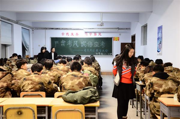 考试过程中学生工作处学生管理科科长吴彬等一行深入到学院各考场巡视考试情况,检查考场环境、考场秩序、考场卫生、考场人数设置、教师巡考、学生干部监考、学生应考等方面的情况,并与学工干部和学生干部进行交流。吴彬指出,考试不仅是对学生学习成果的检验,也是对思想品德和自我约束的检验。他要求学院要以此次《学生手册》考试为契机,加强2018级新生诚信考风考纪教育,以考风促进学风、以学风带动校风,提高人才培养质量。