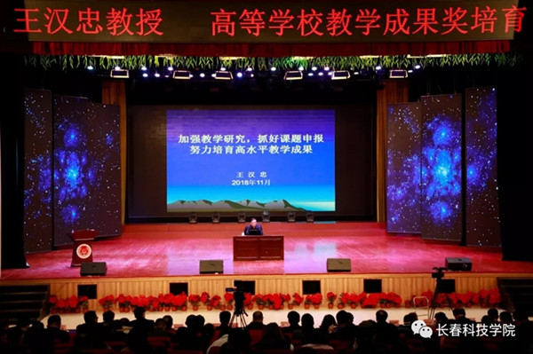 11月15日,长春科技学院东鳌学术论坛国际会议中心内座无虚席,山东协和学院盛振文教授、山东农业大学王汉忠教授分别以《创新创业教育与应用型人才培养》和《加强教学研究,抓好课题申报,努力培育高水平教学成果》为主题在这里作报告。长春科技学院董事长张电达及校党政领导班子成员参加报告会,精彩的报告吸引了来自校内的教职员工、校学生会、社团联合会、大学生创业联合会学生干部总计共1000余人现场聆听。长春科技学院校长主持了本次报告会。