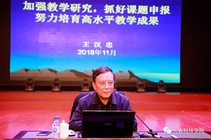王汉忠教授围绕加强教育教学研究的重要性、如何申报课题和开展教育教学研究、培育高水平教学成果是教学研究追求的目标三个方面向大家阐述了如何培育高水平教学成果。