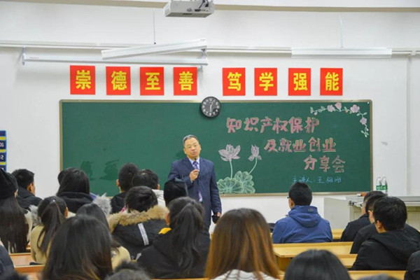 讲座中,王相刚教授以什么是知识产权为切入点,结合国家出台的一系列文件和相关通知,深入浅出地为大家普及了知识产权的相关知识点。他着重强调了知识产权在就业方面作用,讲道家有万贯不如身有一技,就是指知识产权。