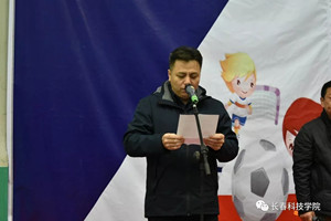 首先,省体育局群体处郑海涛副处长致辞。他代表省体育局向参加开幕式的各位领导、参赛队员、裁判员、球迷朋友以及媒体朋友表示热烈的欢迎和衷心的感谢,向筹备本次比赛的工作人员和长春科技学院表示衷心的感谢。