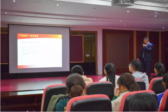姜涛老师对于入党程序进行相关介绍,对入党积极分子培训班授课计划以及《学员手册》进行了宣讲,鼓励在座的重点积极分子能在培训期间严格要求自己,通过学习,加深对党的认识,端正入党动机,加强党性锤炼,争取早日入党。