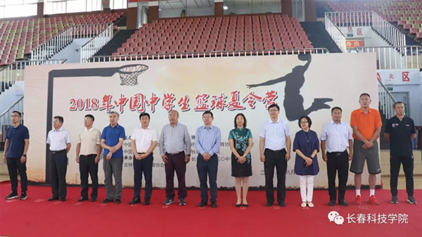 8月20日上午,2018年中国中学生篮球夏令营开营仪式在长春科技学院体育馆举行,中国中学生体育协会副主席王晓毅,吉林省教育厅副厅长战高峰,吉林省学生体育协会常务副会长、长春大学副校长陈煜平,长春市双阳区副区长贾秀丽,长春科技学院党委书记陈延民,吉林省教育厅体卫艺处处长杜颗亮,长春市教育局体卫艺处处长黄蓓,长春市双阳区教育局党委书记、局长王金瑞,中国篮协青委会副主任、原国家男女篮教练、本次夏令营讲师陈德春,中国大学生体育协会篮球分会裁委会主任、国际级裁判员杨茂功,长春市第一五〇中学校长刘东升,青岛新新体育用品有限公司北区销售经理王正焱出席开营仪式。开营仪式由双阳区教育局副局长王晓娟主持。