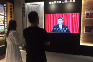 为丰富开放日内容,让广大师生近距离的感悟党中央治国理政的卓越能力和非凡成就,重温十九大召开盛况,温习十九大报告,了解贯彻落实学习十九大精神和习主席中国特色社会主义思想情况,新增了图片展内容,在通往校史馆展厅的走廊一侧贴满了辉煌中国、十九大、习主席重要讲话等内容的图片,吸引了师生的驻足观看。