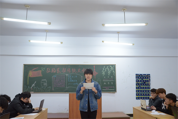 主题班会是大学生思想政治教育的一种有效形式和重要载体,是高校开展日常思想政治教育工作的重要阵地和基本手段,是提升学生思想政治教育水平的有效途径和方式。一直以来,汽车机械工程学院紧紧围绕“立德树人”根本任务,以开展““弘扬传统文化,传承中华文明””主题班会为抓手,以培养又红又专、德才兼备、全面发展的中国特色社会主义合格建设者和可靠接班人为根本使命,结合大学生成长成才规律,开展形式多样的团会活动,有效调动了学子们为实现中华民族伟大复兴中国梦而努力学习的热情。