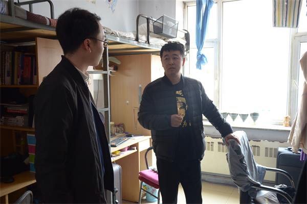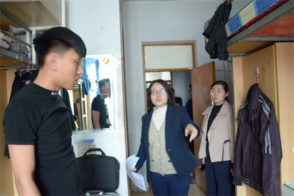 张帅一行逐层、逐间走进学生宿舍,重点对是否有使用违规电器、私扯电线、饲养宠物等进行检查。检查中,张帅认真倾听学生对学院管理意见,了解学生的学习、生活、思想动态。