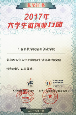 近日,由团中央KAB全国推广办公室、 中国青年报社等单位举办的2017年全国大学生微创业行动评选成果发布会在北京举办。通过综合评审,评选出金奖(A级)10名、银奖(B级)20名、铜奖20名。学校获得2017年全国大学生微创业行动协办B级奖励,全国仅有20所高校获此殊荣。
