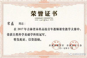 2017年11月4日,由省教育厅、省总工会联合主办的2017年吉林省本科高校青年教师课堂教学大赛在长春师范大学举行,来自全省37所高校的130名教师同台竞技。为了使更多教师参与本次比赛、激发更多青年教师的积极性,大赛分别设置人文社会科学课程组、自然科学基础学科课程组、自然科学应用学科课程组、创新创业课程组、思想政治课程组五大组别。