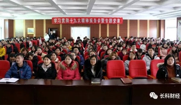 近日,财经管理学院在一教六楼报告厅组织召开党员会议,学习、宣传、贯彻落实党的十九大精神。副校长盖同祥做题为《中国梦、我的梦、不忘初心》的专题报告。财经管理学院全体教工党员、学生党员及重点积极分子参加报告会。