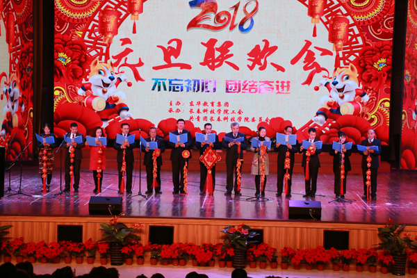 现场播放了《吉林东华教育集团十件大事》和《长春科技学院十件大事》专题片,重温荣耀时刻,变化令人鼓舞,成绩催人奋进。未来参加联欢会的吉林职业技术学院和黄山医药高等专科学校的师生发来祝福视频,共同祝贺集团事业蒸蒸日上!校长发表了新年致辞,祝教职工新年新进步,新时代新思想新作为。在热烈的掌声中,张电达董事长、校长、党委书记陈延民把象征生活甜蜜的糖果分撒到观众席上,董事长向狗年出生的教职员工发放纪念品。