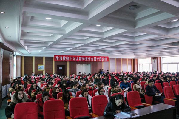 为深入开展学习宣传贯彻党的十九大精神,12月7日下午,在第一教学楼6楼报告厅举办了学习贯彻十九大精神报告会暨专题党课。报告会由校党委书记、督导专员陈延民主讲。党委副书记宋学山主持。校领导,中层干部,全体教师党员和部分学生党员参加了报告会。