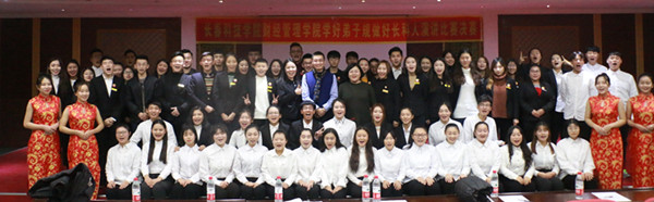 中华文化 ,源远流长,国学经典, 经久不衰。为贯彻落实十九大所提出的文化自信目标,打造学院文化,丰富大学生的课余生活,财经管理学院于12月4日晚在一教六楼报告厅举办《学好弟子规,做好长科人》演讲大赛。财经管理学院党总支副书记赵立夫、学生党支部书记山珊、助理辅导员兼学生会主席李建华以及校学生会副主席胡颖、校社团联合会常务副主席王玥瑶,全体学生干部及2017级全体学生观看了此次比赛。