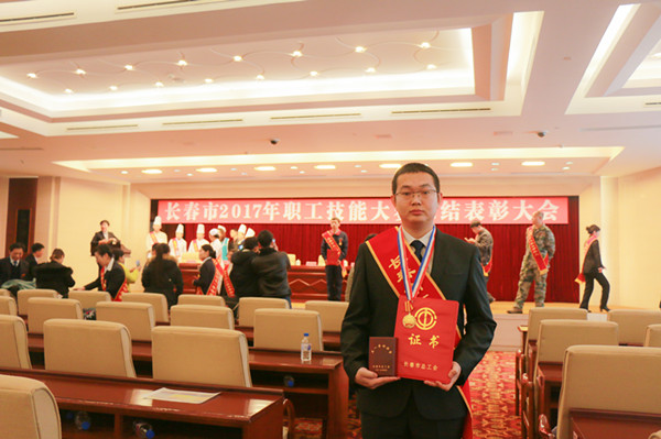 历时8个月、共14.7万人参与不同层级的全年赛事,长春市2017年职工技能大赛完美收官。12月11日,总结表彰大会在吉林省宾馆隆重召开,市总工会党组书记、主席甘琳,吉林省总工会经济部部长袁春阳,市委组织部副部长、市人力资源和社会保障局局长孟宪新,市总工会常务副主席朱琪,市总工会副主席崔维国,长春市总工会经费审查委员会主任高长春出席大会。5个优胜单位荣获了长春市“五一劳动奖状”,26名大赛第一名选手荣获“长春市五一劳动奖章”,82名职工晋升职级,348名选手受到表彰。大会由市总工会常务副主席朱琪主持。学校教师吴斌摘取职工技能大赛数控车、数控铣项目桂冠并喜获长春市“五一劳动奖章”。