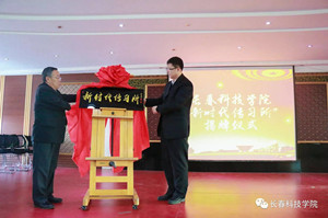揭牌仪式上,党委副书记宋学山宣读了《关于成立长春科技学院新时代传习所》决定。随后在热烈的掌声中,党委书记、督导专员陈延民与党委副书记、副校长谢文义共同为“长春科技学院新时代传习所”揭牌。