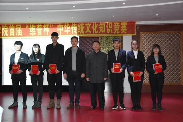 维普资讯区域经理冯应兵、 学校图书馆副馆长郝中、图书馆借阅部主任王秀晶、图书馆采编部主任李婉双、图书馆书刊阅览部老师杨杉杉和全校11所分院的近300名学生代表共同欣赏了这场精彩的竞赛。 首届中华传统文化知识竞赛旨在带动全校学生重温国学经典,分享诗词之美,感受传统文化之趣,从古人的智慧和情怀中汲取营养,涵养心灵。