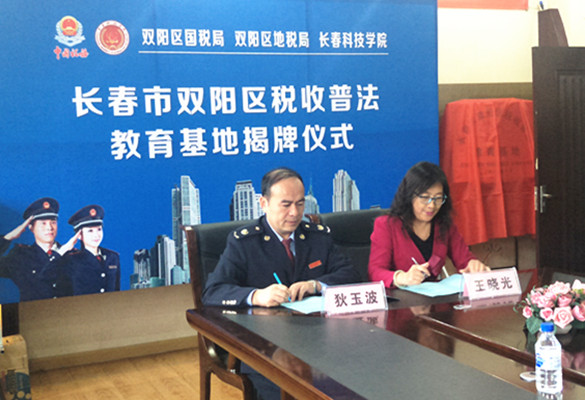 据悉,由国税局、地税局和长春科技学院联合建立的税收普法教育基地是双阳区唯一一个,也是长春市为数不多的基地之一。基地的建立,为学校与双阳区国税局、区地税局开展产学研校企合作提供了新平台,为推动人才培养向应用型技术技能型人才上转变,向增强学生就业创业能力上转变提供了新思路,为全面提高学校服务区域经济社会发展和创新驱动发展的能力注入了活力。