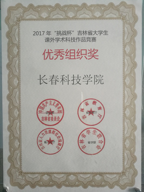 “挑战杯”吉林省大学生课外学术科技作品竞赛由团省委、省科协、省教育厅、省学联主办,是一项具有导向性、示范性和群众性的竞赛活动。竞赛创办以来,始终坚持“崇尚科学、追求真知、勤奋学习、锐意创新、迎接挑战”的宗旨,在推动广大高校学生参与学术科技实践、发现和培养创新型人才、深化高校素质教育等方面发挥了积极作用,集中展示了高校的育人成果。