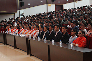 为践行社会主义核心价值观,传播见义勇为正能量,发挥英雄模范人物的示范引领作用,促进平安长春、和谐长春、幸福长春建设,8月31日上午9:00分,由市委宣传部、市精神文明办、市公安局主办,市见义勇为工作办公室、市见义勇为志愿者协会承办,以“献大爱 铸平安”为主题的见义勇为英雄事迹首场高校报告会在学校东鳌学术论坛——国际会议中心隆重举行。党委副书记宋学山、市公安局见义勇为工作办公室魏巍、团委书记李可心、学生工作处副处长钟万臣、各分院党总支副书记、学工办主任、辅导员与近千名师生参加了报告会,王雪辉、王峰、孙德波、王世秋、李松林、颜晓立、潘亚楠、李冬生8名英雄做了事迹报告。
