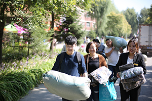 在迎新过程中,为确保随时解决出现的各类问题,校长及领导小组成员多次深入现场,同新生家长亲切交谈,现场征求意见,并走访各点位,了解新生需求,及时协调有关部门予以解决。学校成立了协调组、宣传组、接站组、报道组、住宿组、保卫组、后勤组、医务组等十五个组,囊括学生报到的方方面面,各组密切配合,高效运行,方便了学生,温暖了家长。
