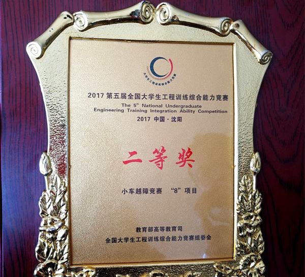 我校参赛选手秉承“行胜于言”的精神,在指导教师和领队的带领下,坚持勤学苦练,克服困难,反复调试,认真准备。在为期两天的比赛中,三位选手奋力拼搏,沉着冷静,密切配合,超常发挥,经过激励角逐,我校代表队最终以精湛的技能和团队协作能力在众多代表队中脱颖而出,获得了本届大学生工程训练综合能力竞赛小车越障竞赛“8”项目二等奖,这是我校首次获此殊荣。