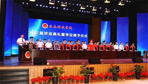 初夏的校园莺飞草长,姹紫嫣红。6月24日至25日,东鳌学术论坛——国际会议中心喜气充盈,激情荡漾,长春科技学院2017届学生毕业典礼暨学位授予仪式在这里隆重举行。吉林东华教育集团副总裁宗占国、长春科技学院副校长高彪、王艳梅、谢文义、欧阳军、盖同祥,党委副书记宋学山,校长助理高杰、监事会副主席李博、校长助理毕庆三、张阳、刘晓辉,教务处处长吴安平出席,各分院(部)处室领导、毕业生家长、亲友和3000余名师生欢聚一堂,分享毕业典礼暨学位授予仪式庄严而幸福的时刻。