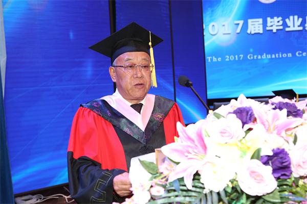 典礼上,学校领导发表了热情洋溢的讲话。他说,时间如白驹过隙,四年的大学时光即将在这炎炎夏日中落下帷幕。今天,我们在国际会议中心再次迎来了莘莘学子走出校园迈向社会这一庄重的时刻。“数载寒窗苦,今日又重生;欢聚离别时,他年载誉归。”面对着父母的养育之恩情,老师的培育之劳苦,我提议把你们此生中最热烈的掌声送给他们!他向毕业生提出三点希望:一是要脚踏实地,勇往直前;二是要与时俱进,笃学强能;三是要克己自责 修心养性。校长最后说,同学们,今天的离别是为了明天更好的相聚,请背起来时的行囊,记住母校的生活历程,心怀感恩之心,收起对校园的不舍,把眼泪化作坚强,勇敢的逆风——飞翔!聆听着校领导的教诲,毕业生无不热泪盈眶,心潮澎湃。