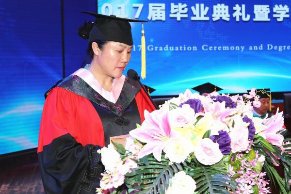 毕业生代表任洪霞、王玥、吴信豪、姜浩瀚同学,教师代表陈海英、郑莲婧、王立、马丹老师先后作了大会发言。同学们在发言中纷纷表示:要永远铭记母校的教育,时刻不忘师长教诲,用在大学学到的知识和技能,为国家和社会建设增砖添瓦,为人类幸福贡献力量,为母校争光添彩。教师代表的发言浸透了师长对学生的挚爱和殷殷真情,表达了师长对学生的依依别情和良好祝愿。