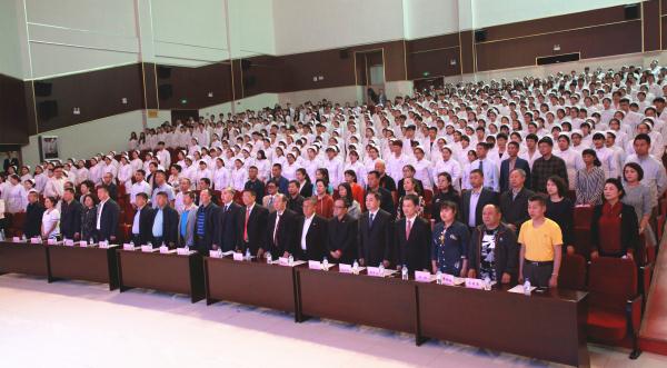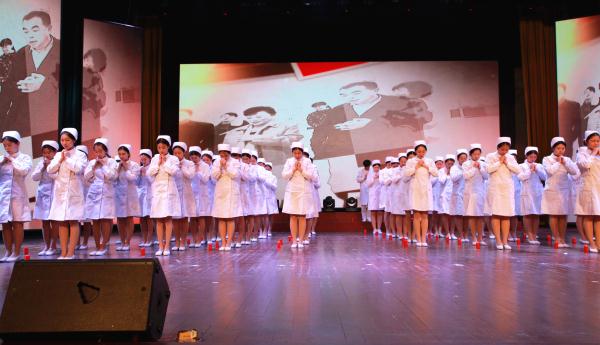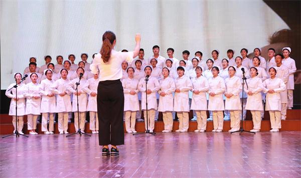 大会在大合唱《中国护士之歌》中落下帷幕。校领导和嘉宾走上主席台,与演出人员、护理专业学生代表合影留念。