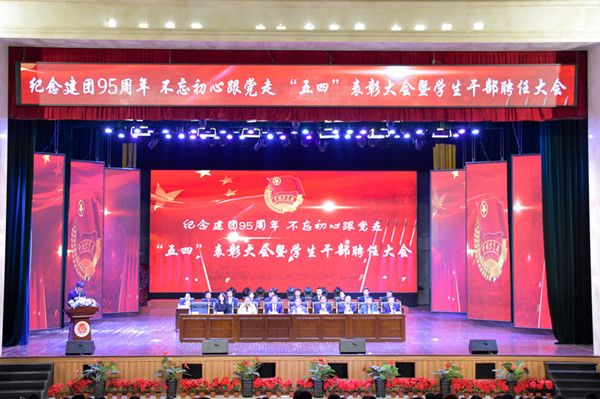 5月4日下午,东鳌学术论坛——国际会议中心内气氛庄重而热烈,由共青团长春科技学院委员会主办的纪念建团95周年,不忘初心跟党走“五四”表彰大会暨学生干部聘任大会在这里国隆重举行。党委副书记,副校长谢文义,副校长欧阳军、党委副书记宋学山、监事会副主席李博、党委宣传部部长高芳、党政办公室副主任杜海军、学生工作部副部长钟万臣、党委组织部副部长李亚楠,近千余名青年教师代表和学生代表参加大会。 大会由校团委书记李可心主持。