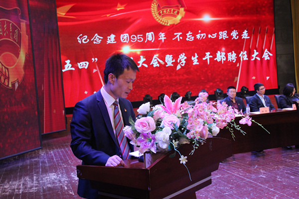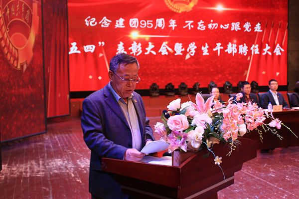 宋学山作了讲话。他首先代表校党委向全校团员青年和各级共青团组织、团干部、青年工作者致以节日的问候,向受到表彰的先进集体和先进个人表示热烈的祝贺。他说,我校历来高度重视团学工作,在学校党政班子的领导下,团学工作不断取得了新成绩。过去的一年,学校各级团学组织,围绕学校中心工作,在各项工作中取得了优异成绩。宋学山最后向广大团员青年和各级团学组织提出三点希望:一是希望广大团员青年坚定理想信念,增强社会责任感,牢记习近平总书记对广大青年的谆谆教诲,自觉把个人梦想融入到祖国现代化建设的伟大事业中去;二是希望广大团员青年珍惜学习时间,开拓创新,练就过硬本领;三是希望全校各级团学组织求真务实,团结带领广大青年团员不忘初心跟党走,在实现中华民族伟大复兴的征途中续写新的光荣。