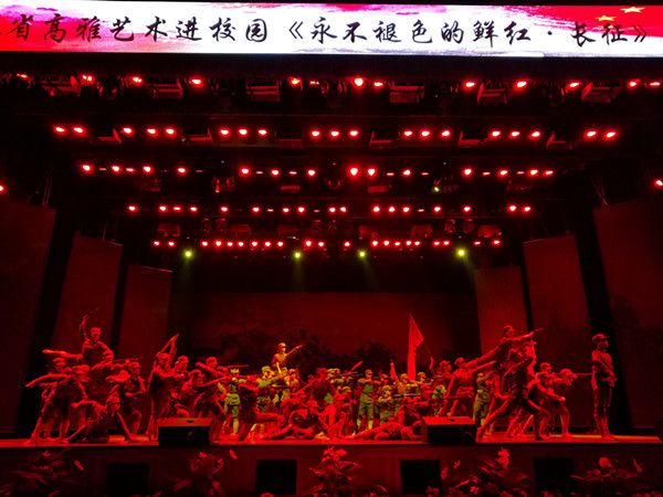 红军长征是人类历史上的伟大奇迹,长征精神更是人类历史上壮丽的一章。12月12日17时,由共青团吉林省委主办,共青团长春科技学院委员会、吉林省艺术学院委员会承办的吉林省高雅艺术进校园系列活动《永不褪色的鲜红·长征》文艺演出在我校东鳌学术论——国际会议中心激情上演,近千名师生观看了演出。