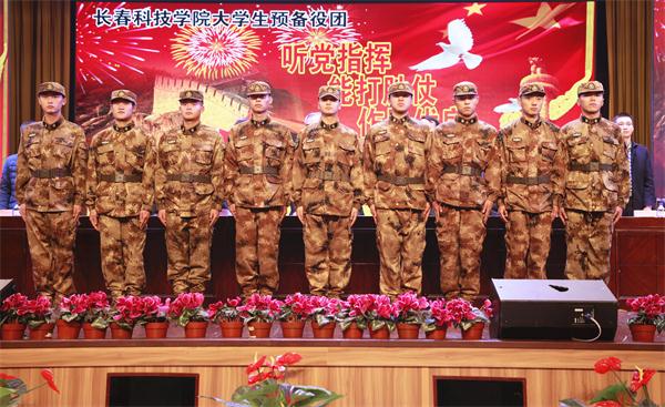 11月18日下午,东鳌学术论坛——国际会议中心气氛庄重热烈,我校在这里隆重举行大学生预备役团总结表彰大会暨预备役士兵入队授衔仪式。长春陆军预备役某高射炮兵旅政治部主任戴启、长春市双阳区人民武装部副部长李好、长春科技学院党委书记姚秋杰、副校长谢文义、校长助理宋学山、武装部政委赵立夫、大学生预备役团团长王东红出席大会,1500余名大学生预备役团士兵参加大会。