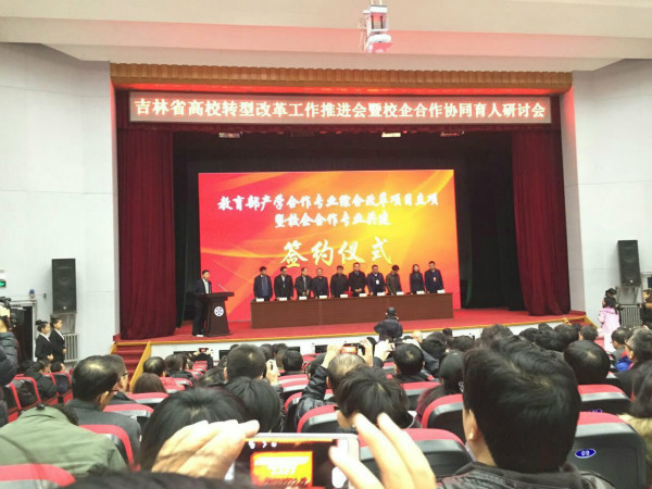 会上公布了《吉林省地方本科高校转型发展联盟新成员》和《吉林省地方地方本科高校转型发展联盟共享实习实训及师资培训基地》;举行了《吉林省大学生创客空间和大学生孵化基地》授牌仪式和《教育部产学合作专业综合改革项目立项暨校企合作专业共享》签约仪式。吉林省教育厅高教处处长宋辉作了讲话。