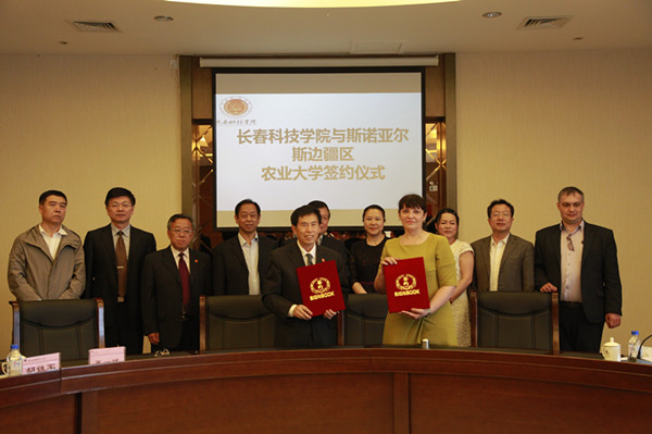 见面会上,宗占国校长致欢迎辞,欢迎代表团访问我校,并且介绍我校总体概况、师资力量、办学条件及所取得的成绩。接下来俄罗斯克拉斯诺亚尔斯克边疆区国立农业大学校长贝瑞科娃· 娜塔莉亚女士也介绍了俄罗斯克拉斯诺亚尔斯克边疆区国立农业大学的成立时间、办学宗旨和人才培养模式。李玉院士、副校长欧阳军、副校长王艳梅、动物科技学院院长赵权、生物食品学院院长胡铁军分别就菌类生长、梅花鹿的繁衍及饲料生产、两校教学模式等方面合作进行了深入的探讨,并在合作模式上达成一致。宗占国校长与俄罗斯克拉斯诺亚尔斯克边疆区国立农业大学校长贝瑞科娃· 娜塔莉亚女士签署了长春科技学院与俄罗斯克拉斯诺亚尔斯克边疆区国立农业大学关于在教育与科研领域的合作协议。 会后,两校参会人员合影留念,并互赠礼品。