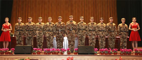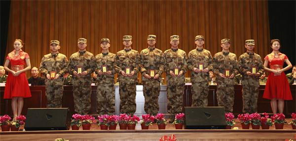 伴随着欢快的乐曲声,出席大会的军地领导为受到表彰的优秀预备役士兵代表颁发了荣誉证书,为新入队的大学生预备役士兵代表授衔并佩戴服饰。受到表彰和新入队的大学生预备役士兵军容严整、精神振奋、气宇轩昂、威武挺拔、英姿飒爽,接受出席大会领导的检阅,展现出了朝气蓬勃、青春靓丽的预备役士兵风采。