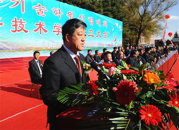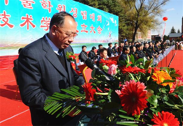 延边州副州长蓝公海发表了热情洋溢的讲话。他指出,吉林高等技术学院的成立,成为延边州优化教育结构、教育资源的一项重要成果,也是为延边州构建现代高等职业教育体系的一项重要举措。它的创办必将为推动延边州教育事业发展起到重要作用。组建过程中,获得省政府、教育厅的大力指导和支持,龙井市委市政府、吉林东华教育集团及学院领导和员工倾注了大量的心血,做了大量的工作。在讲话中,他对吉林高等技术学院今后的发展提出了殷切的希望。希望学院面向经济建设和社会发展主战场办学,以培养高素质、技术技能型人才为目标,为全州乃至全省发展方式转变和产业转型升级提供强大支撑。希望学院持续发扬追求卓越、超越自我的开拓进取精神,积极探索、深化改革,持续推进高职教育发展,办出水平、办出优势、办出特色,为全州教育事业发展做出更大贡献。