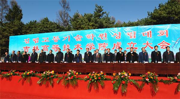 10时整,吉林高等技术学院成立大会正式开始。长春科技学院军乐团奏响《义勇军进行曲》,全场起立高唱国歌。在热烈的掌声中,省教育厅副巡视员纪拓宣读《吉林省人民政府关于同意成立吉林高等技术学院的批复》。