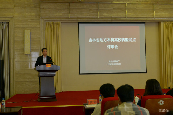 会议先由教育厅高教处处长宋辉主持。简要介绍了吉林省地方本科高校转型试点的申报情况,本次评审会,12所申报整体转型试点本科高校,4所申请部分转型本科高校。当天上午整体转型高校现场PPT汇报,专家提问答辩,采取开放答辩评审,互动交流方式进行。部分转型高校不做现场汇报,下午专家集中审阅申报材料。专家组5人组成,聘请省外知名专家。通过评审达到以评促建、以评促改、以评促转的目的。