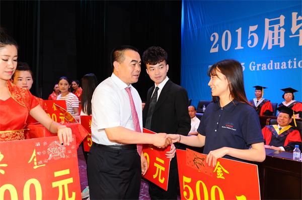 毕业典礼在雄壮的《国歌》声中开始。熙莹副校长宣读了《关于2015届应届本科学生准予毕业的决定》《关于授予2015届毕业生学士学位的决定》,姚秋杰书记宣读了《关于表彰2015届优秀毕业生的决定》《关于表彰2015届毕业生考取研究生的决定》《关于表彰职业技术学院2015届取得专升本资格学生的决定》,与会领导为获得“优秀毕业生”荣誉称号的同学颁发了证书并为取得专升本资格的同学颁发了奖金,张电达董事长为考取硕士研究生的同学颁发了奖金,宗占国校长发表了讲话,毕业生代表、教师代表先后发言。