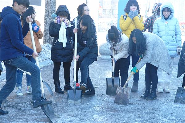 刘心告诉记者,通过参加这样的义务劳动,他深深体会到服务他人、方便自己的快乐;通过开展这次铲雪除冰活动,不仅检验了学生的