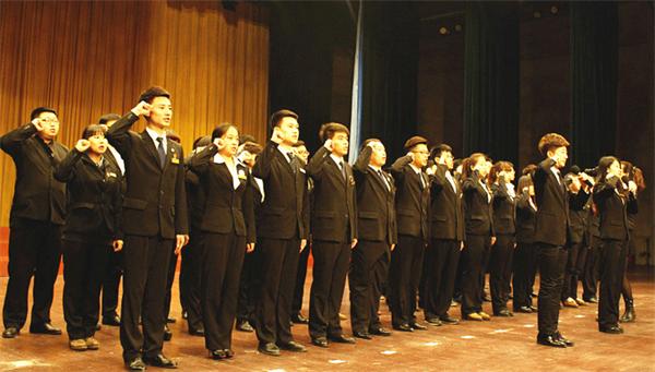 为大力弘扬社会主义核心价值观体系,教育和引导学生干部树立崇高理想和正确的世界观、人生观、价值观 ,增强广大学生干部的责任感、荣誉感和事业心,提高学生干部的权责意识和服务意识,3月19日下午,由长春科技学院党委主办、校团 委承办的“践行社会主义核心价值观,发挥学生干部先锋模范作用”宣誓承诺大会仪式在东鳌学术论坛——国际 会议中心成功举行。各分院党总支书记、辅导员老师、学校8大组织学生干部以及各分院学生会干部近800余人参加了宣誓仪式。