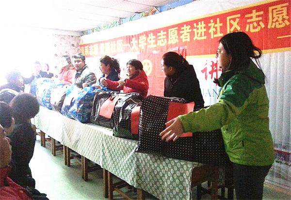 进入寒冬季节,校团委青年志愿者再次组织募捐活动,各宿舍楼下有多名志愿者负责整理同学们捐赠的各类物品并做详细登记,同学们热情捐赠,直至活动尾声,仍有很多同学赶来捐赠;校团委青年志愿者协会成员尽职尽责守护好捐赠物品,维护好捐赠秩序。天气虽然寒冷,但志愿者们热情高涨,干劲不减,用他们的实际行动渲染着“爱心成就梦想、我们与你同行”的捐赠主题,诠释爱的真谛和意义。截至11月底,共募捐到价值上万元的各类过冬衣物500余(件)个。12月9日上午,校团委老师朱媛媛和董阳春冒着严寒,带领青年志愿者将衣物送到长春市二道区八里堡街道泰和社区贫困家庭的群众手中。泰和社区书记陈丽激动地说:“长春科技学院志愿者为社区送来这么多衣物,帮助解决了贫困家庭群众的生活困难,让他们感受到了社会大家庭的温暖,并表示社区将以此次活动为契机,把帮扶工作作为社区的重要工作来抓,大力推进帮扶活动,发挥桥梁纽带作用,共同努力做好大学生志愿者进社区志愿服务活动。”
