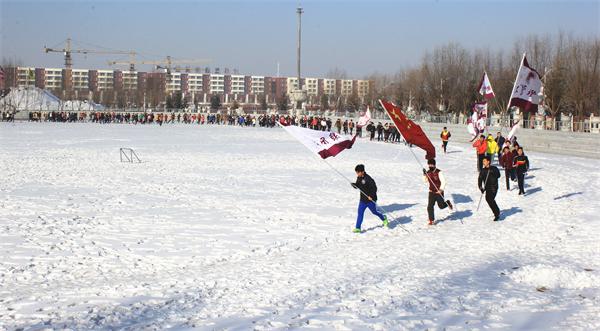 本次长跑以运动场为起终点。途经体育馆、东鳌学术论坛——国际会议中心、一二号教学楼,绕校园一周后返回运动场。上午11时20分,随着一声发令枪响,比赛正式开始。来自11个分院的500余名参赛选手满怀激情地冲出了起跑线,跑道两边拉拉队的呐喊助威声划破长空。严寒天气,冰雪路面,既考验了参赛者的体力和耐力,又磨砺了参赛者的意志和毅力。一路上,参赛选手不畏严寒、迎难而上、互相鼓励,传递坚持到底、争取胜利的决心和信心;在光滑的跑道上你追我赶,奋勇拼搏,尽显当代大学生的运动之美、竞技之美和拼搏之美。他们挑战自我、永不服输的精神吸引不少路人驻足观看,迎风招展的国旗、社团旗、院旗成为沿途一道独特的风景线。