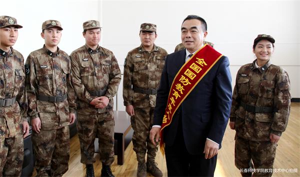 庆祝大会上,宗占国校长致辞,张电达董事长发表了讲话。宗校长在致辞中说: “全国国防教育年度人物”荣誉称号,经过国家国防教育办公室根据评审条件严格筛选和专家的层层审核,每年度在全国范围 内仅表彰10人。能够获得这一国家级殊荣实属不易。吉林东华教育集团总裁、长春科技学院张电达董事长荣获“2014全国国防教育 年度人物”荣誉称号,是全国普通高校中的唯一,这不仅是他个人的荣耀,也是全体长科人的光荣和骄傲,更是值得载入长科史册 的一件大喜事。这一殊荣的获得,源自于张电达董事长对国家的深爱,对国防事业的关注,对建设强大国防的使命感、责任感,以及将 学生培养成社会主义建设者、接班人和国防后备力量的前瞻意识。宗校长盛赞道:张电达董事长首开先河成立长春科技学院大学生预备 役团,搭建依托部队开展国防教育的新平台,体现了他企业家的敏锐,教育家的深邃和深厚的军人情怀,他果断地提出大力开展国防教 育,把军队好的思想、好的作风、好的做法以及好的经验带入高校的动议结出了硕果。大学生预备役团建制4年间,严格的军事化教学、 国防化教育、正规化管理,已经把国防知识和国防理念深深地融入到我校莘莘学子的血脉中,不仅增强了学生的国防观念以及爱国主义 和集体主义思想,在历练学生意志品格、促进学生专业技能学习诸多方面也起到了不可替代的作用。宗校长在谈到张电达董事长热衷于 国防教育的先进事迹其影响力时说:学校先后被吉林省和长春市评为国防教育先进单位,中央电视台、《国防教育》《吉林国防》《吉 林日报》等多家媒体多次报道其经验和做法,并得到有关单位或部门的积极借鉴和大力推广。张电达董事长在兴办国防教育、拥军爱军 方面所做出的卓越贡献及其所建成的大学生预备役制度,功在当代,利在千秋。他所倡导的国防教育已然成为我校办学特色,成为我校 对外宣传以及提升学校知名度和影响力的一张闪亮名片。