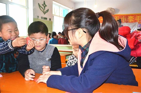 当日8时,外国语学院绿色环境组织委员会环境保护部副部长王思余、李丰羽带领10名大学生志愿者们来到了双阳区星源幼儿园。他们在幼儿园老师的帮助下,用准备好的气球、拉花将幼儿园教室布置得既漂亮又温馨。随后他们与幼儿园孩子们进行了互动。首先,通过教孩子们手工折纸,锻炼了孩子们的动手能力,也提高了他们的逻辑思维能力;然后,与孩子们进行了萝卜蹲游戏,锻炼了孩子们的反应能力;最后,教孩子们学唱儿歌《如果感到幸福你就拍拍手》,学跳《兔子舞》,整个过程大家都配合得十分默契,现场氛围温情动人,有说有笑,与孩子们建立了良好的情谊,本次活动在一片欢声笑语中落下了帷幕。
