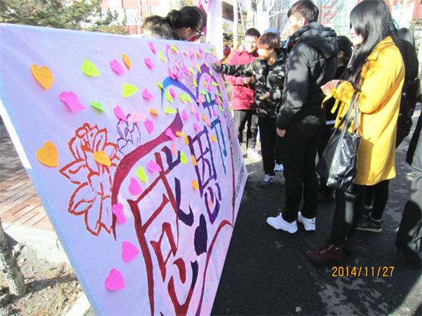 11月27日,由共青团长春科技学院主办,绿色环境委员会感恩母亲部承办的主题为“感恩从心开始,让爱温暖彼此”的大型许愿签字感恩活动在我校一舍楼下如火如荼进行。