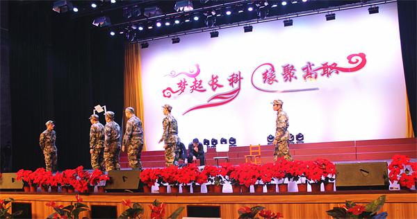 为欢迎2014级新同学,促进大学生间的文化与思想交流,培养、挖掘和展现其艺术才能,职业技术学院11月18日晚在东鳌学术论坛—国际会议中心举办了主题为“梦起长科,缘聚高职”的迎新文艺晚会。监事会副主席、审计监察处处长李博,党委组织部部长、学生处处长赵立夫,职业技术学院院长崔秋华、总务处处长尹前一、保卫处处长王柱石、保卫处政委高权利、教育质量监督办公室副主任丁月,各分院党总支书记、机关处(室)的老师以及分院全体教师与千余名学生一起观看了晚会。