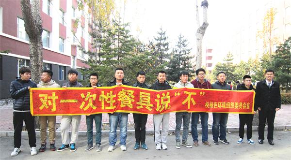 参加活动的人熙熙攘攘,了解环保,为环保尽责是同学们的共同心声。校绿色环境组织委员会的学生干部通过宣传展版为大家详细介绍了使用一次性筷子的弊端和相关环保知识。同学们自愿在“对一次性餐具说‘不’”和“对舌尖上的浪费说‘不’”的横幅上签名承诺。