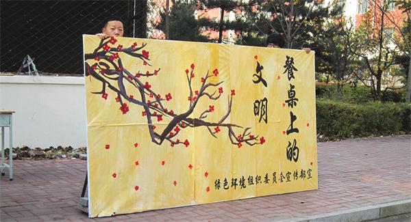 为提高同学们的环保意识,10月20日,我校绿色环境组织委员会开展的“餐桌上的文明”主题签名活动,在校内甬道上举行。