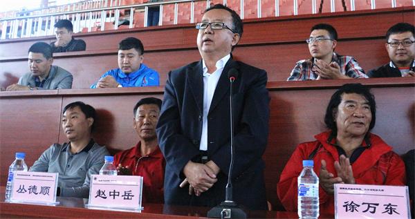 11时30分,仪式在庄严的国歌声中开始,全场肃立。吉林省武术协会主席徐万东作了讲话。他首先对我校的武术氛围及武术文化活动给予充分肯定,特别提出成立太极拳研究会我校是吉林省高校中的第一所。他说,推动中国民族传统体育文化发展,促进中国武术段位制进校园,普及太极拳运动,提高学生身体素质是当代大学生的任务,希望太极拳作为国术能成为大学生终生锻炼的项目,大家一定要继承和发扬中国民族传统文化,把武术推向世界,走进奥运。